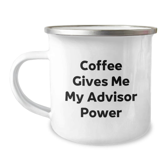 Funny Advisor Gifts from Family, Unique Camping Mug for Graduation, 'Coffee Gives Me My Advisor Power'