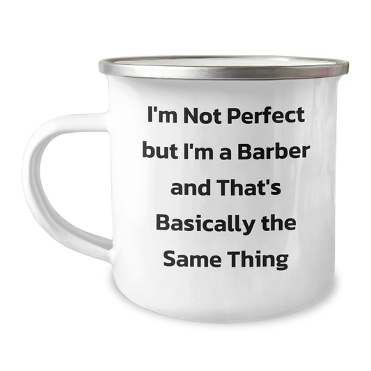 Funny Gifts from Friends to Barbers - I'm Not Perfect But I'm A Barber And That's Basically The Same Thing, Camping Mug for Graduation