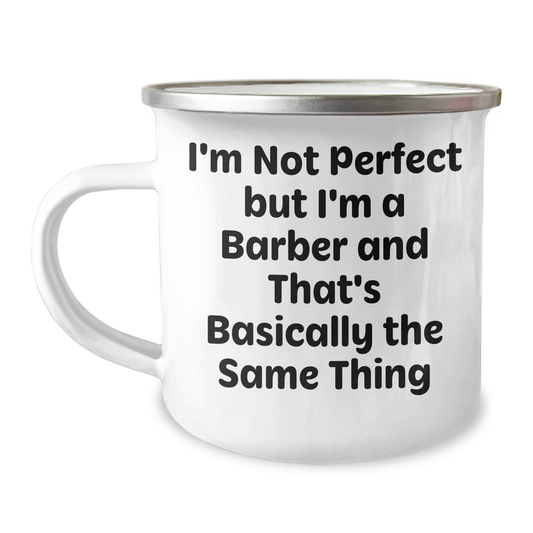Funny Barber Gifts for Graduation - I'm Not Perfect But I'm A Barber And That's Basically The Same Thing - Camping Mug by Gifts from Men to Barber Friends