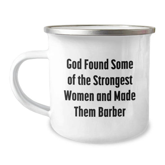 Funny Barber Gifts from Friends for Graduation Unique Gifts - 'God Found Some Of The Strongest Women And Made Them Barber' Quote on Camping Mug