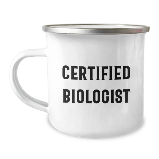 Funny Biologist Gifts from Friends, Biologist Camping Mug for Graduation, 'Certified Biologist' Quote, 12 oz Stainless Steel with Enamel Finish