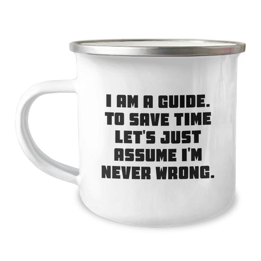 Funny Guide Gifts for Him Christmas Camping Mug - 'I Am A Guide. To Save Time Let's Just Assume I'm Never Wrong.'
