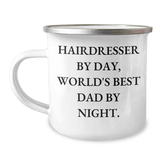 Funny Hairdresser Gifts for Graduation - World's Best Dad By Night, Enamel Camping Mug - Gifts from Men, Hairdresser's Proud