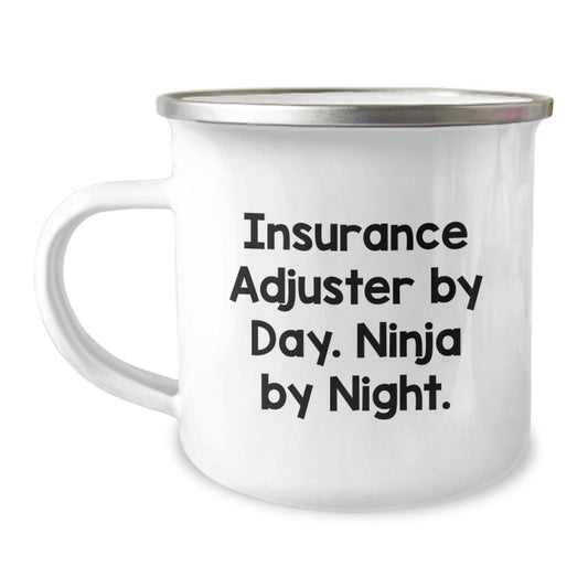 Insurance Adjuster Ninja's Camping Mug, Gifts from Friends for Birthday, Funny Quote 'Insurance Adjuster By Day. Ninja By Night.'