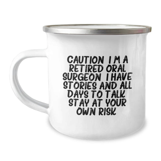 Funny Oral Surgeon Gifts from Friends for Oral Surgeon Christmas Unique Gifts - Camping Mug, Caution: I'm A Retired Oral Surgeon. I Have Stories And All Days To Talk. Stay At Your Own Risk!