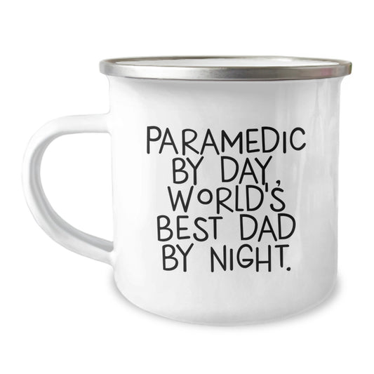 Funny Rescue Worker Gifts for Men, Rescue Worker By Day, World's Best Dad By Night., 12 oz Camping Mug, Graduation Unique Gifts from Family, Friends, Coworkers, Rescue Worker Lovers