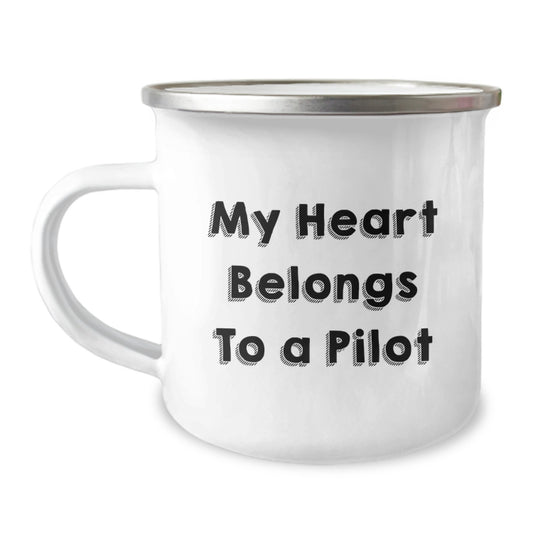 Funny Pilot Gifts for Him - My Heart Belongs To A Pilot 12 oz Camping Mug, Unique Birthday Unique Gifts from Friends to Family