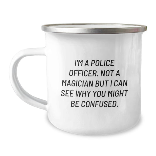 Funny Police Officer Camping Mug Gifts for Graduation, 'I'm A Police Officer. Not A Magician But I Can See Why You Might Be Confused.' from Friends, Family, Coworkers