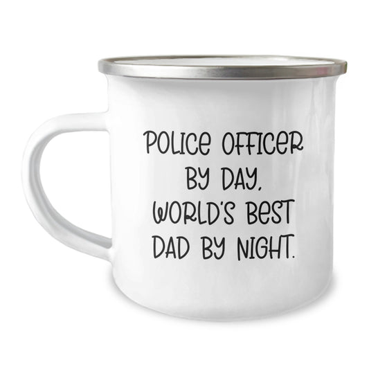 Police Officer Gifts, Funny Camping Mug for Birthday, 'Police Officer By Day, World's Best Dad By Night.'