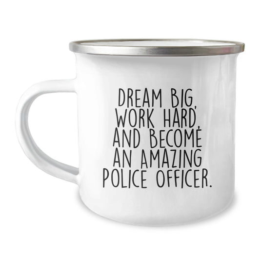 Police Officer Gifts, Camping Mug, Inspirational Quote, 'Dream Big, Work Hard, And Become An Amazing Police Officer.', Gifts from Family to Police Officer for Graduation