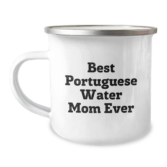 Funny Portuguese Water Dog Mom Gifts for Birthday - 'Best Portuguese Water Mom Ever' Camping Mug, 12 oz Stainless Steel with Enamel Finish, Gifts from Family to Portuguese Water Dog Enthusiasts