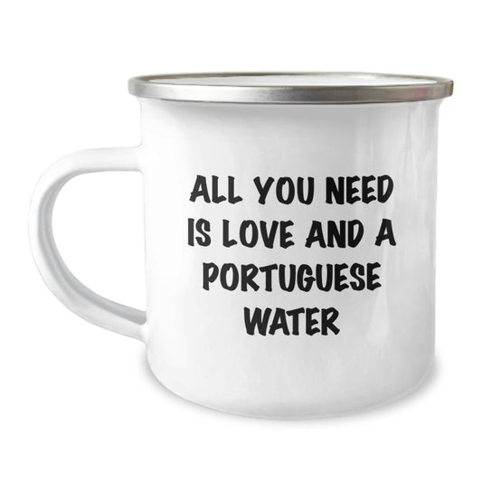 Funny Portuguese Water Dog Lover Gifts from Friends for Birthday, Camping Mug with 'All You Need Is Love And A Portuguese Water' Quote