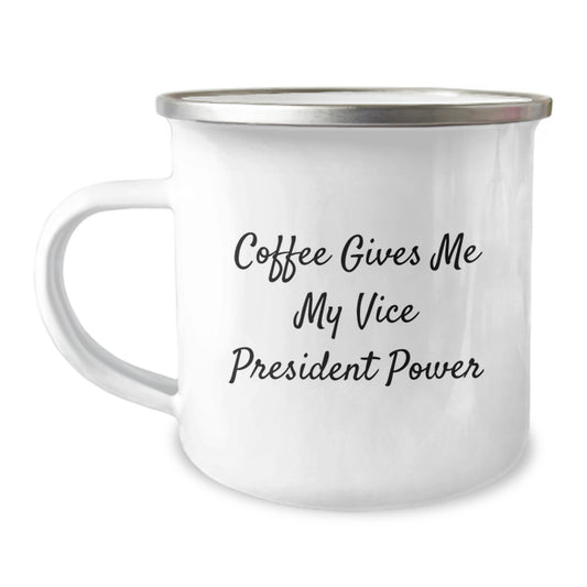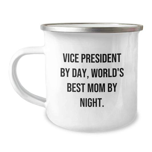 Funny Vice President Mom Gifts, Camping Mug for Vice President, Enamel Finish, 12 oz Capacity, Gifts from Family, Friends, Coworkers to Vice President, Christmas Unique Gifts