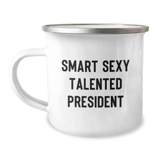 Funny President Gifts for Men - Smart Sexy Talented President Quote Camping Mug, 12 oz Stainless Steel with Enamel Finish, Ideal Gifts from Friends to Family for Graduation