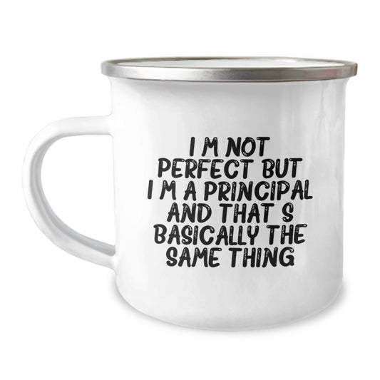 Principal Gifts from Friends - Funny Camping Mug for Birthday, 'I'm Not Perfect But I'm A Principal And That's Basically The Same Thing', Unique Gifts for Men, Women, Family, Coworkers, and Friends
