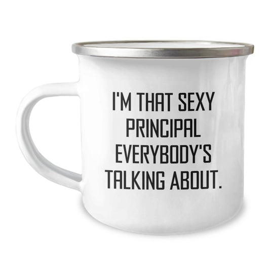 Funny Principal Gifts from Men to Principal, Unique Christmas Unique Gifts for Principal, 12 oz Stainless Steel Camping Mug with Permanent 'I'm That Sexy Principal Everybody's Talking About' Quote