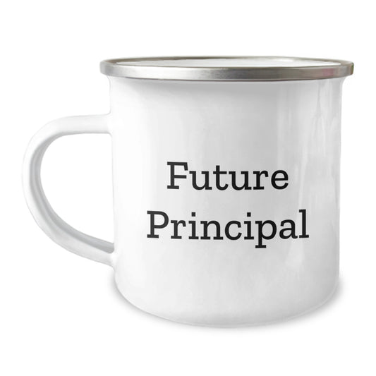 Funny Principal Graduation Gifts from Family - 'Future Principal' Quote on Camping Mug, 12 oz Stainless Steel with Enamel Finish, Perfect for Principal Gifts for Men, Women, or Coworkers