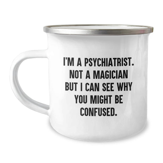 Gifts from Friends to Psychiatrist, Funny Camping Mug for Graduation, 'I'm A Psychiatrist. Not A Magician But I Can See Why You Might Be Confused.', Unique Gifts for Men