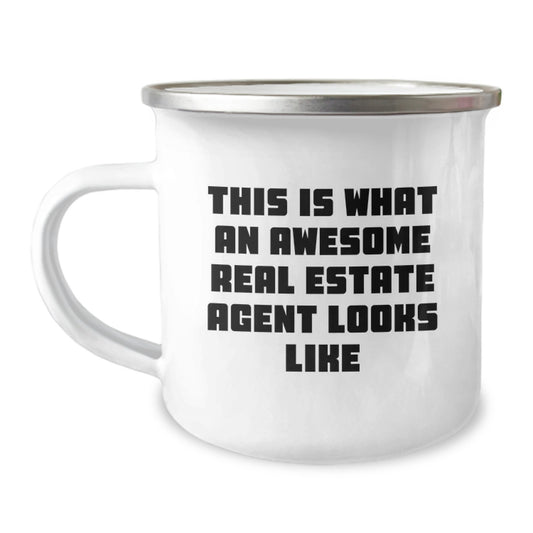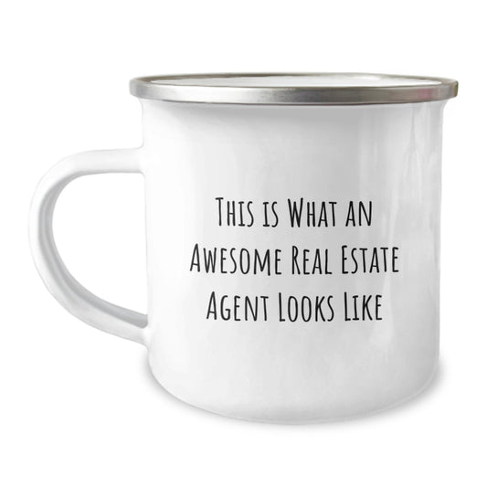 Funny Real Estate Agent Gifts from Friends, Birthday Unique Gifts for Real Estate Agent, Camping Mug with Quote 'This Is What An Awesome Real Estate Agent Looks Like' for Men or Women