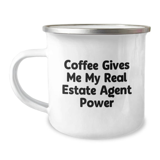 Funny Real Estate Agent Gifts from Friends - 'Coffee Gives Me My Real Estate Agent Power' Quote on Birthday Camping Mug for Real Estate Agent Men, Gifts for Real Estate Agent, Real Estate Agent Women