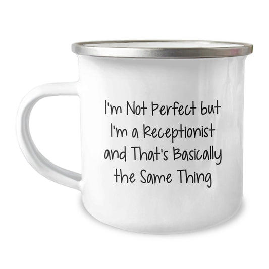 Funny Receptionist Gifts from Friends - I'm Not Perfect But I'm A Receptionist And That's Basically The Same Thing, Birthday Unique Gifts for Her, 12 oz Stainless Steel Camping Mug