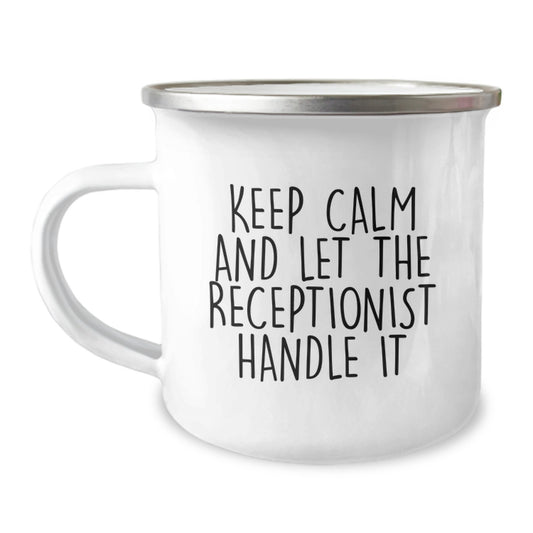 Funny Receptionist Christmas Unique Gifts for Friends, Unique Camping Mug, 'Keep Calm And Let The Receptionist Handle It' Quote, Gifts from Men to Women Coworkers