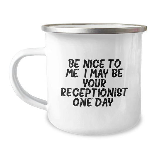 Funny Receptionist Gifts, Unique Camping Mug for Coworkers, Be Nice To Me I May Be Your Receptionist One Day Christmas Unique Gifts from Friends