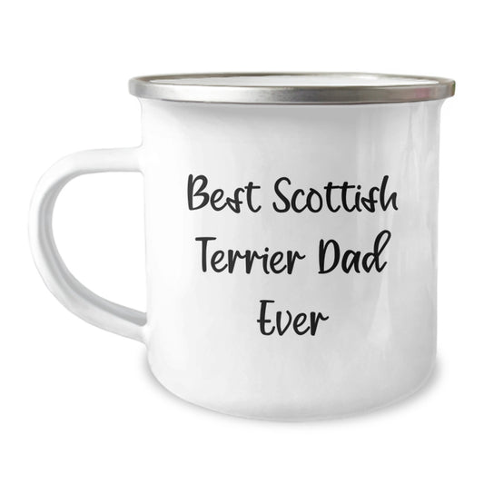 Scottish Terrier Dad Camping Mug, Best Scottish Terrier Dad Ever, Funny Gift for Scottish Terrier Dog Lovers on Birthday from Friends, Family, or Coworkers