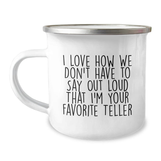 Funny Teller Gifts for Men from Coworkers - 'I Love How We Don't Have To Say Out Loud That I'm Your Favorite Teller' Enamel Camping Mug, Stainless Steel, 12 oz