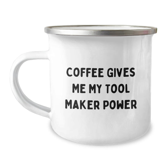 Gifts from Friends and Family for Tool Maker Graduation Unique Gifts - 'Coffee Gives Me My Tool Maker Power' Funny Camping Mug, 12 oz Stainless Steel Enamel Finish