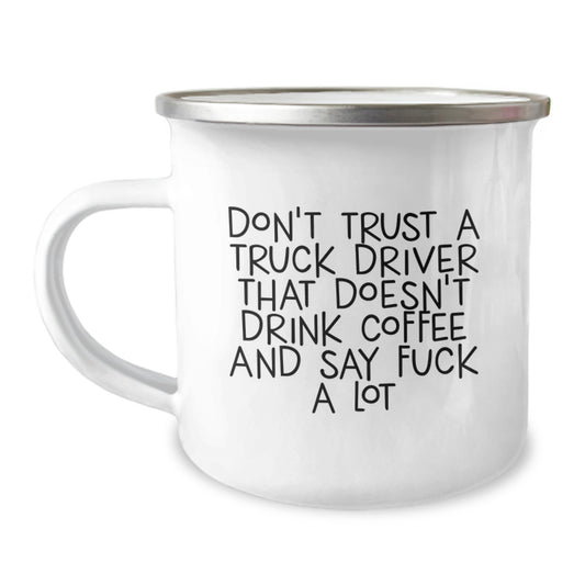 Funny Truck Driver Gifts for Birthday - 'Don't Trust A Truck Driver That Doesn't Drink Coffee And Say F--k A Lot' Camping Mug from Friends
