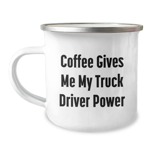 Funny Truck Driver Gifts for Men - 'Coffee Gives Me My Truck Driver Power' Camping Mug, Stainless Steel with Enamel Finish, Gifts from Friends to Men on Graduation