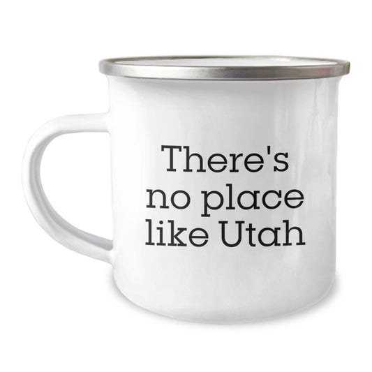 Utah Camping Mug, Funny Quote Gifts from Friends for Utah Graduation, 'There's No Place Like Utah' Printed on 12 oz Stainless Steel with Enamel Finish