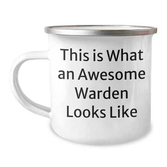 Warden Graduation Gifts from Family - Funny Camping Mug for Men, This Is What An Awesome Warden Looks Like, 12 oz Stainless Steel with Enamel Finish