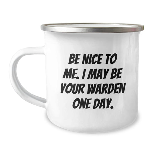 Warden Gifts - Be Nice To Me. I May Be Your Warden One Day. Funny Camping Mug for Graduation, Gifts from Friends to Coworkers, Family, and Warden Lovers