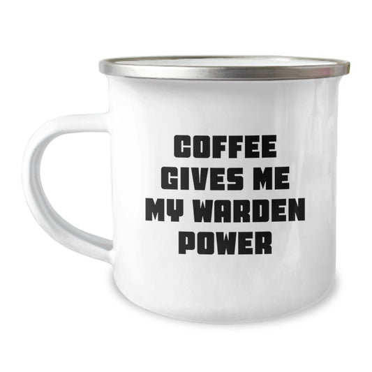 Warden Power Mug, Funny Graduation Gift from Family to Warden, Coffee Lovers, Camping Mug with Quote 'Coffee Gives Me My Warden Power', Unique Gifts for Warden, Friends, and Coworkers