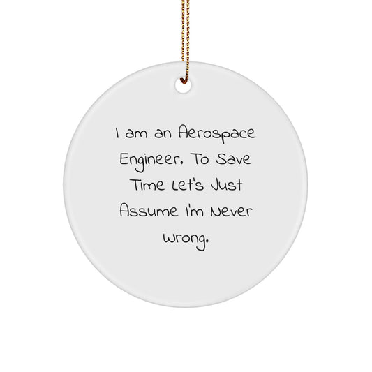 Funny Aerospace Engineer Gifts - Circle Ornament for Christmas - 'I Am An Aerospace Engineer. To Save Time Let's Just Assume I'm Never Wrong.'