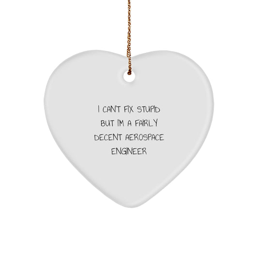 Aerospace Engineer Gifts from Friends, Funny Heart Ornament for Christmas, I Can't Fix Stupid But I'm A Fairly Decent Aerospace Engineer