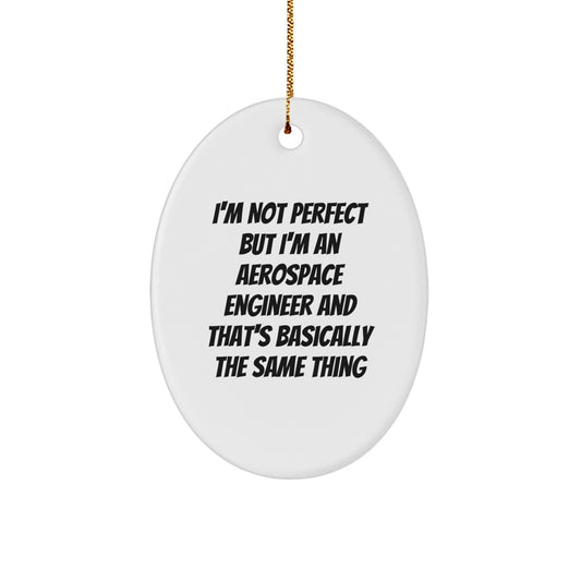 Funny Aerospace Engineer Gifts from Friends for Christmas - 'I'm Not Perfect' Oval Ornament