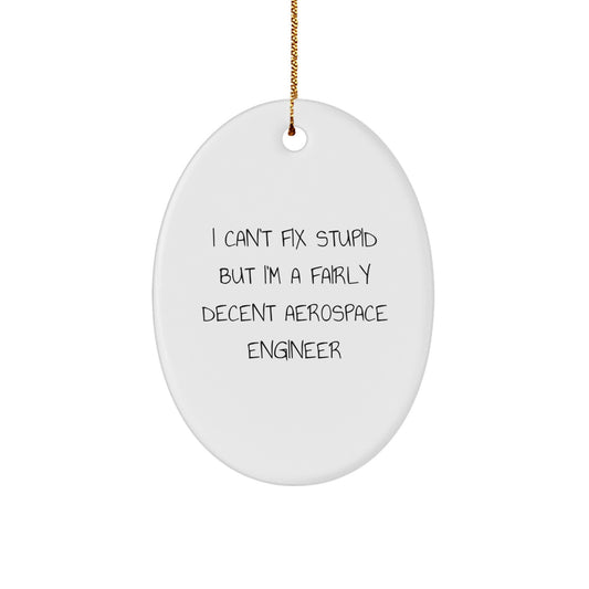 Funny Aerospace Engineer Gifts for Men - Oval Ornament 'I Can't Fix Stupid But I'm A Fairly Decent' - Christmas Unique Gifts from Friends to Family