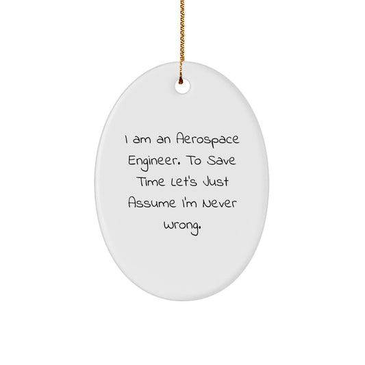 Funny Aerospace Engineer Gifts from Friends - I Am An Aerospace Engineer. To Save Time Let's Just Assume I'm Never Wrong. Oval Ornament for Christmas
