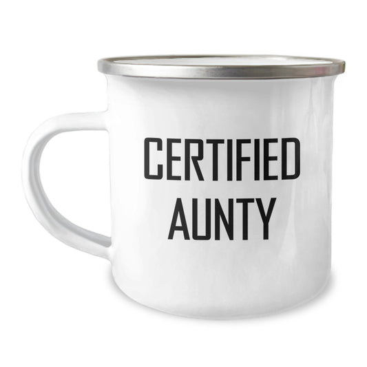 Aunty's Camping Adventure Gifts from Friends, Funny Quote 'Certified Aunty' 12 oz Camping Mug for Birthday