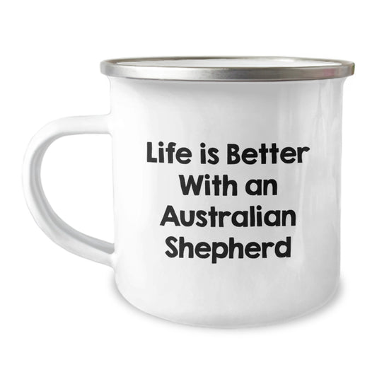 Funny Australian Shepherd Dog Gifts for Men from Friends, Graduation Unique Gifts for Australian Shepherd Dog Lovers, Camping Mug with Quote 'Life Is Better With An Australian Shepherd'