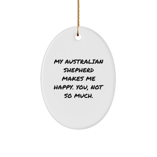 Australian Shepherd Dog Oval Ornament - Funny Gift from Friends and Family for Men, Women, and Coworkers - 'My Australian Shepherd Makes Me Happy. You, Not So Much.'
