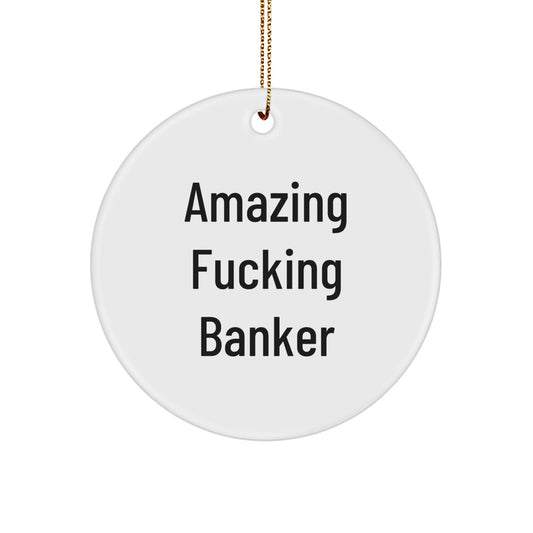 Funny Christmas Unique Gifts for Banker Friends - 'Amazing F--king Banker' Circle Ornament, Circle Shaped, White, Great for Coworkers, Men