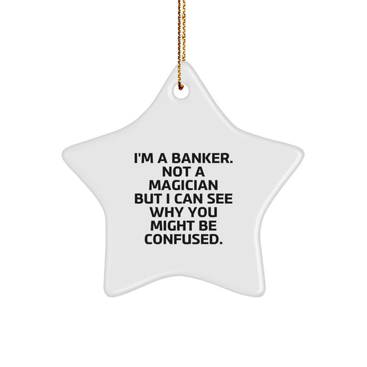 Funny Banker Gifts from Family, Friends, or Coworkers - 'I'm A Banker. Not A Magician But I Can See Why You Might Be Confused.' Star Ornament for Christmas