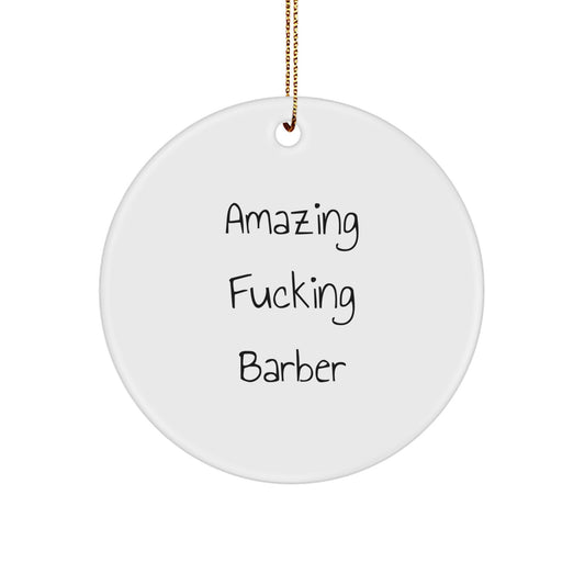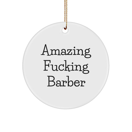 Funny Barber Gifts from Friends to Barber, Amazing Circle Ornament for Barber, Christmas Unique Gifts for Men - 'Amazing F--king Barber' Decoration