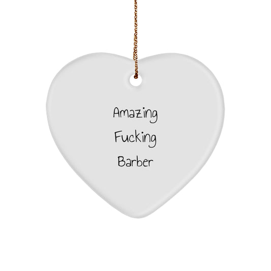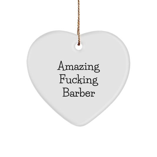Funny Barber Gifts for Men, Amazing F--king Barber Heart Ornament, Christmas Unique Gifts from Friends, Family, or Coworkers