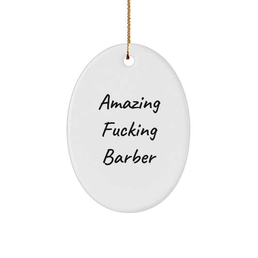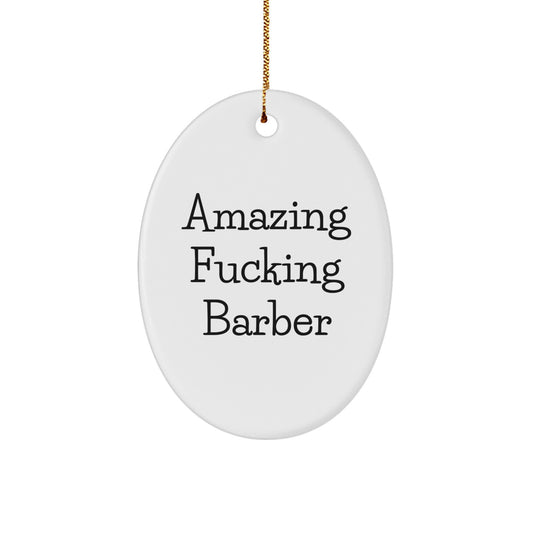 Funny Barber Gifts from Men for Barber, Oval Ornament with Amazing F--king Barber Quote, Christmas Unique Gifts, Oval Shaped Decor