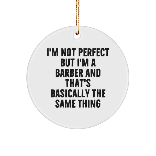 Funny Barber Gifts for Men - 'I'm Not Perfect But I'm A Barber And That's Basically The Same Thing' Circle Ornament, White, Christmas Unique Presents from Friends